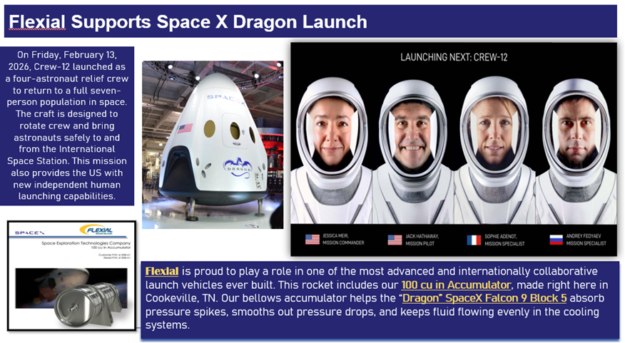 Flexial Corporation, is a key supplier to Hamilton Sundstrand, providing highly engineered edge-welded metal bellows, accumulators, reservoirs, and other products for fluid management applications onboard numerous space systems, including the International Space Station.